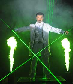 The laserman experience is a unique magical illusion created by S.A.C. Vasanth. The 3D effect lets you travel inside the beams and experience the laws of physics crumble when you see the beams take various forms in his hands.
